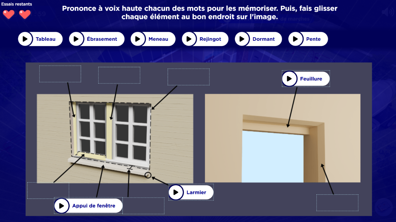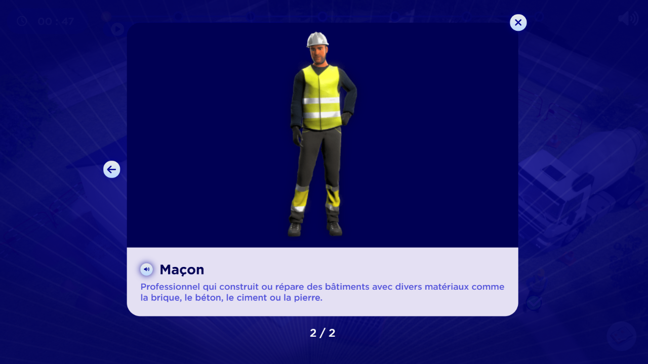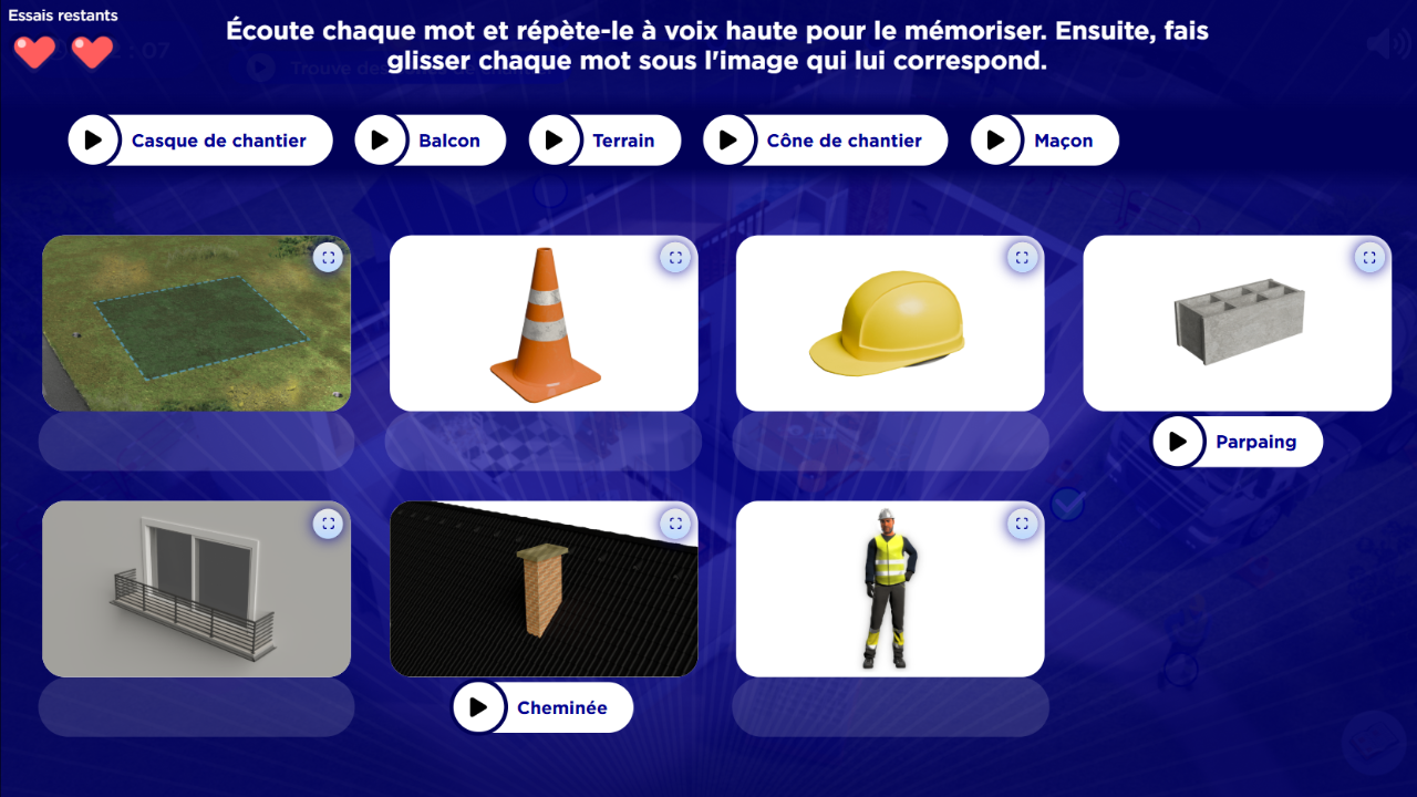 - Un apprentissage du vocabulaire d’un chantier via des activités pédagogiques ludiques et des interactions avec les décors
