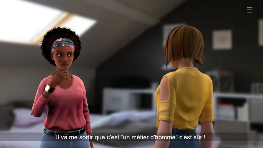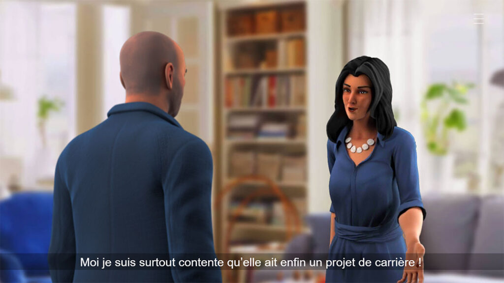 - Une mise en situation réaliste, soutenue par un scénario non linéaire qui évolue en fonction des choix de la joueuse